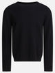 Maglione girocollo in lana e seta C.P. Company con struttura finezza 14. Il capo presenta costruzione in maglia compatta in lana merino ultrafine e seta, caratterizzata da lavorazione regolare e texture uniforme. Il modello offre silhouette regular e dettagli distintivi come polsini, girocollo e orlo lavorati a costine. Un'etichetta con logo è applicata sull'orlo, mantenendo essenzialità e attenzione ai dettagli costruttivi.