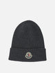 Berretto in lana Moncler, realizzato in filato di lana extra fine con lavorazione a costine. La costruzione presenta una silhouette aderente e risvolto strutturato. Il berretto è rifinito da un patch applicato con logo Moncler posizionato frontalmente sul risvolto. Finezza 7 garantisce compattezza e regolarità della maglia. Lavorazione e materiali esaltano la struttura lineare ed essenziale del modello.