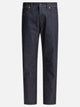 Jeans "Denim-Rinsed" Stone Island, costruiti in denim da 13,5 oz, realizzati in cotone biologico con trama in twill a 4 fili. Struttura a cinque tasche con silhouette regular straight. Tasche curve sul davanti e quinto taschino sul lato destro. Dettaglio di ricamo a forma di stella sotto la tasca sinistra. Tasche posteriori rinforzate e badge Stone Island Denim Research con bottoni in metallo applicati sul retro della vita. Chiusura frontale con bottoni in patta, superiore visibile in nero. Finitura rinsed, impunture a contrasto.