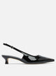 Slingback "Catrina" Aeyde presenta una struttura definita da una silhouette affusolata con punta cesellata e tacco kitten. La costruzione impiega tomaia in pelle liscia, montata su una suola personalizzata antiscivolo. Il cinturino posteriore, regolabile, consente un adattamento preciso al piede. L'assemblaggio privilegia linee nette e un profilo minimale, con materiali selezionati per garantire contenimento e stabilità.