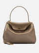 Borsa a spalla "Rodeo" Balenciaga, realizzata in pelle di vitello martellata, presenta una silhouette strutturata e angolare. La costruzione comprende un manico superiore con luce di 20,5 cm e una tracolla rimovibile di 57,4 cm. Il design integra una chiusura a girello, un'ampia tasca anteriore, uno scomparto principale e una fodera interna in nappa di agnello. Bottoni a pressione laterali e quattro piedini in ottone completano la struttura.