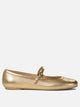 Ballerine mary jane "Carla" Gianvito Rossi, costruite interamente in pelle di vitello, presentano una struttura flat con punta arrotondata e una silhouette essenziale. Il cinturino superiore è arricchito dalla fibbia Ribbon, elemento distintivo del marchio, fissato alla tomaia tramite cuciture visibili. La suola in gomma garantisce resistenza e grip, completando la costruzione del modello che mantiene proporzioni compatte e lineari.