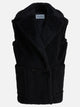 Giacca smanicata in teddy in alpaca e lana Max Mara, realizzata in tessuto teddy a base seta con struttura doppiopetto. La linea è ampia, con silhouette oversize e maxi collo a rever. La chiusura anteriore prevede due bottoni a vista, mentre le ampie tasche applicate sul davanti incrementano la funzionalità. Il capo è completamente foderato in tessuto stretch con motivo Monogram jacquard.