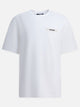 Gros Grain Jacquemus logo T-shirt made from organic cotton. The construction features a loose fit, with short sleeves and a ribbed crew neck finish. The Jacquemus gros-grain logo is embroidered on the chest, characterizing the garment with a textural contrast element. The seams are linear and the silhouette maintains a regular fit, coordinating practicality and comfort in everyday wear.