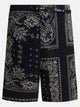 Kapital paisley print shorts featuring a cotton construction. The pattern features a patchwork construction, made with panels that echo the paisley bandana design. The silhouette is loose-fitting, with an adjustable waist via an integrated drawstring. A zippered back pocket and side welt pockets for added convenience complete the garment. Reinforced seams add strength to the garment.