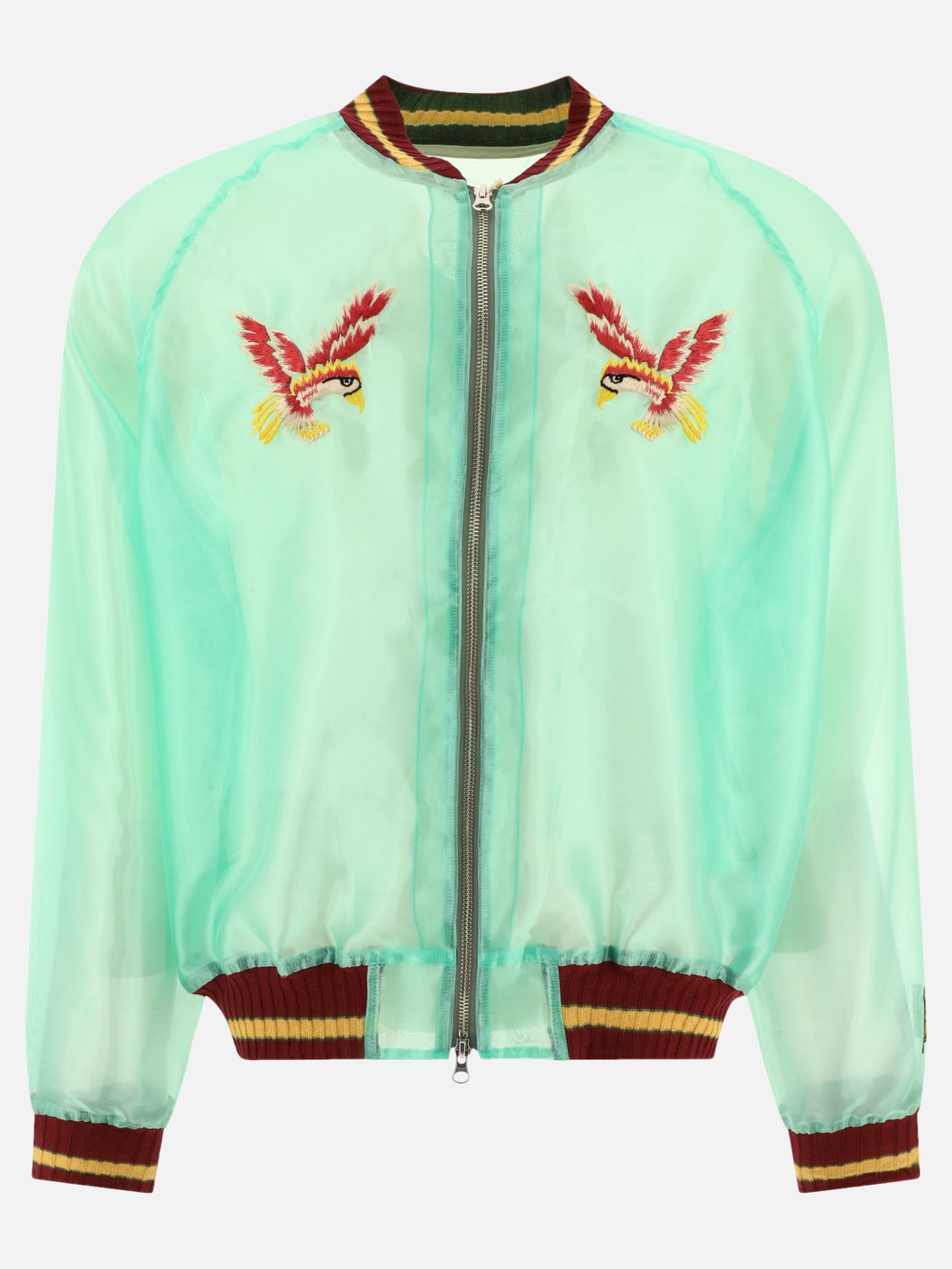 KAPITAL's "Sheer Pearl" Bomber Jacket is a bold and sophisticated garment perfect for the man who likes to stand out in style. Made from high-quality materials, it offers a semi-sheer effect that adds a modern and innovative touch to the classic bomber jacket. This garment is ideal for those seeking a mix of comfort and unique details.