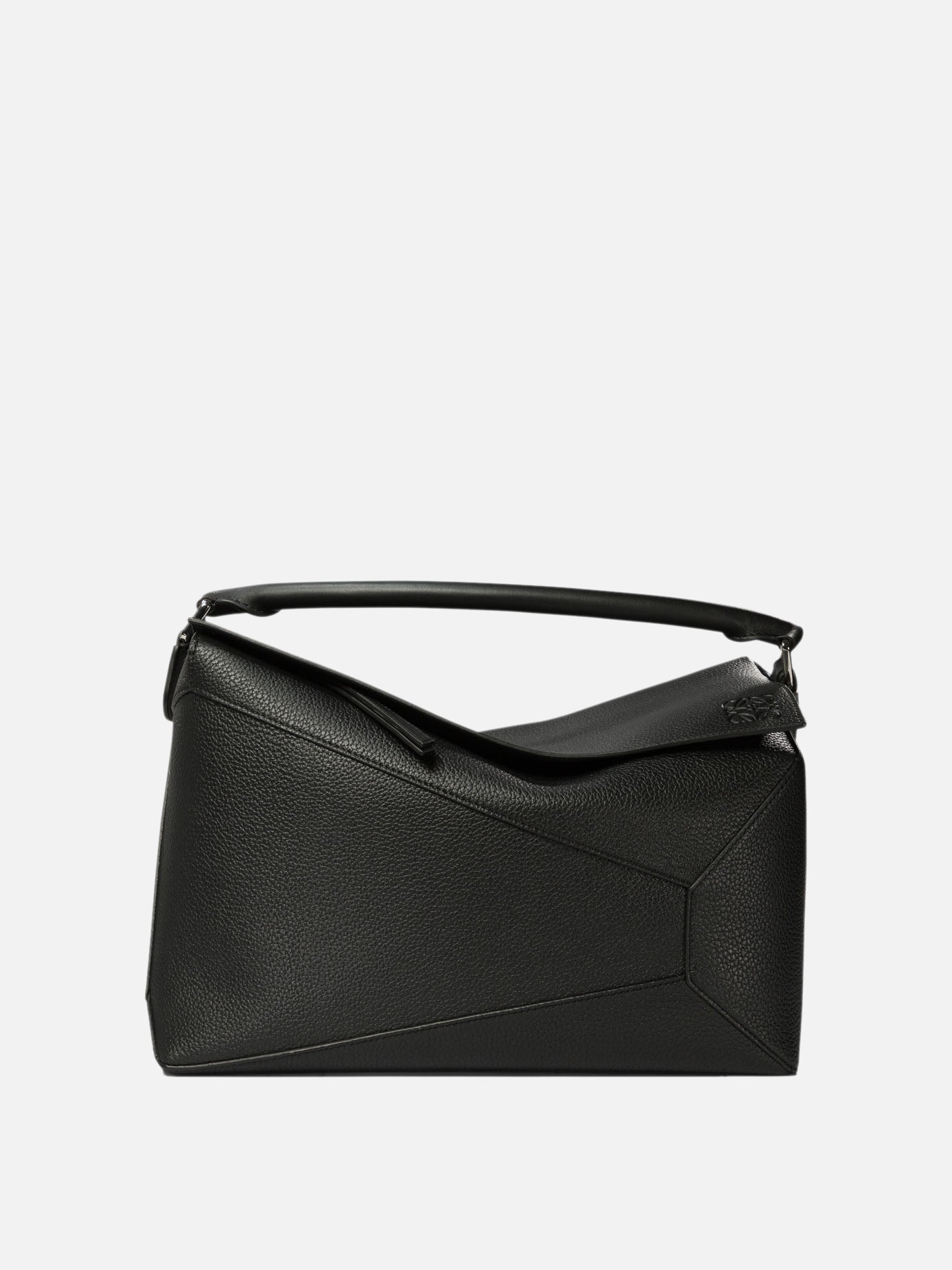 Loewe's "Large Puzzle" handbag is a testament to modern style and craftsmanship. Designed for the man who appreciates distinctive design and functionality, this bag is distinguished by its unique cubic shape and refined grained calfskin leather. Perfect for any occasion, it represents a classy investment.