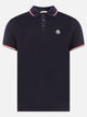 Cotton pique polo shirt with Moncler logo patch, featuring a compact construction and durable fabric details. The garment features a defined silhouette with a classic collar and front closure using mother-of-pearl buttons. Tricolor inserts are applied at the sleeve and collar edges, integrating distinctive elements into the profile. The main fabric uses piqué-knit cotton yarn, defining the texture and tightness of the surface.