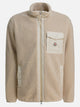 Moncler "Teddy" fleece jacket, made of teddy-effect fleece with nylon trim along hem and functional details. The construction features a regular silhouette with a full-zip front closure. Large zippered side pockets and a nylon chest pocket with snap button complete the design. The cuffs and bottom are elasticized for comfort and shape retention.
