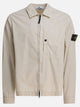 Stone Island organic cotton canvas overshirt jacket with a straight structure and regular silhouette. The material is composed of gauzed organic cotton canvas that has undergone a dyeing and subsequent fading treatment that gives a surface with a three-dimensional effect. Front closure with concealed double-slider zipper. Snap-button cuffs. One patch pocket on chest with standing opening and button on cotton webbing.