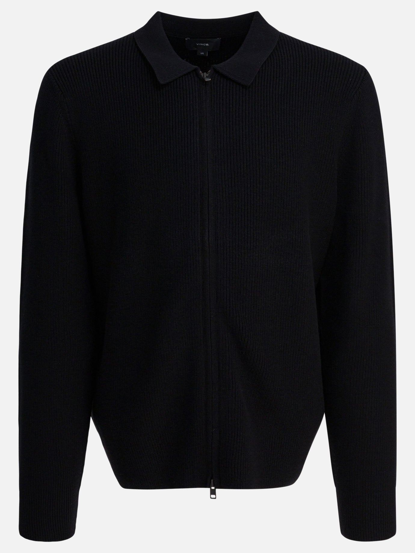 Vince wool-blend cardigan with shirt-jacket-inspired construction. Made from a blend of wool, cotton and cashmere, it features a uniform shaker-stitch workmanship. The silhouette features a straight-cut construction defined by a knit collar and double-slider front zipper closure. Medium weight and combined materials ensure structural strength without sacrificing lightness and breathability.