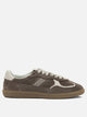 Alohas "TB 490 Rife Sea" sneaker with suede upper features a low silhouette built on a rubber sole. The model features exposed stitching and contrasting details integrated into the structure of the shoe. The tongue and sides are distinguished by the presence of the imprinted logo, while the construction maintains regular volumes proportioned to the typical low top sneaker profile.
