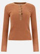 Chloé's Henley Shirt is an elegant and refined garment designed for the sophisticated woman. Made of ultra-fine wool knit, it offers a slim fit that enhances the feminine silhouette. The Tunisian collar adds a touch of sensuality, while mother-of-pearl buttons and an embroidered Chloé logo on the chest make it an exclusive, high-fashion piece.