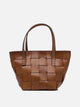 Dragon Diffusion small "Japan" handbag made of hand-woven cowhide leather with a crisscross pattern. The semi-rigid structure defines the body of the bag, while the compact silhouette features sharp lines and reduced volumes. Equipped with a double top handle, it features an interior lining and the presence of a pendant in the shape of a St. Christopher medal, sewn inside as the brand's authentic signature.