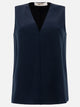 F.IT V-neck tank top with a streamlined silhouette, made from polyester-based fabric, features a front V-neck and a central pleat that defines the structure. The sleeveless cut emphasizes the straight, minimal silhouette, while the matte fabrication enhances the texture of the material. The bottom hem features a clean finish with no visible seams.