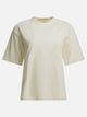 Cotton T-shirt with Golden Goose logo, constructed from compact jersey. The fabric features a distressed treatment, which defines the surface texture. The structure of the model is characterized by a boxy silhouette, with straight seams and regular cut on the shoulders. The back is finished with embossed Golden logo, accompanied by a double star positioned above the lettering. The sleeves are short and the collar features a clean line.