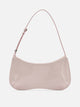 Jacquemus "Le Bisou" shoulder bag constructed of glacé calfskin with a smooth surface and rigid structure. The compact silhouette features an edge-to-edge construction and an adjustable leather shoulder strap with buckle and engraved metal beaded details. The top closure is a continuous zipper. The interior includes a fabric patch pocket for storing small items.