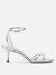 Jimmy Choo "Leo 100 mm" heeled sandals made of python-effect leather. The silhouette features slim lines, essential upper and open construction. The buckle-adjustable ankle strap ensures a stable fit. The defined sole complements a geometrically proportioned heel that enhances the structure. All edges are finished for uniformity and strength.