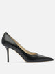 Jimmy Choo's "Love 85 mm" pump, made of satin fabric, features a pointed toe silhouette with tapered lines and a handcrafted construction. The upper features a precise profile, and support is provided by the slim heel. The sole, made of hand-carved leather, completes the construction with a uniform finish designed for a regular fit.