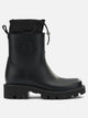 Moncler "Kickstream" rain boots made of waterproof materials. The upper consists of a synthetic structure that provides protection against rain, with an even surface. The profile features a straight line without embellishments, with an essential silhouette that follows the shape of the foot and leg. The construction integrates a contoured sole designed to provide stability on wet terrain.