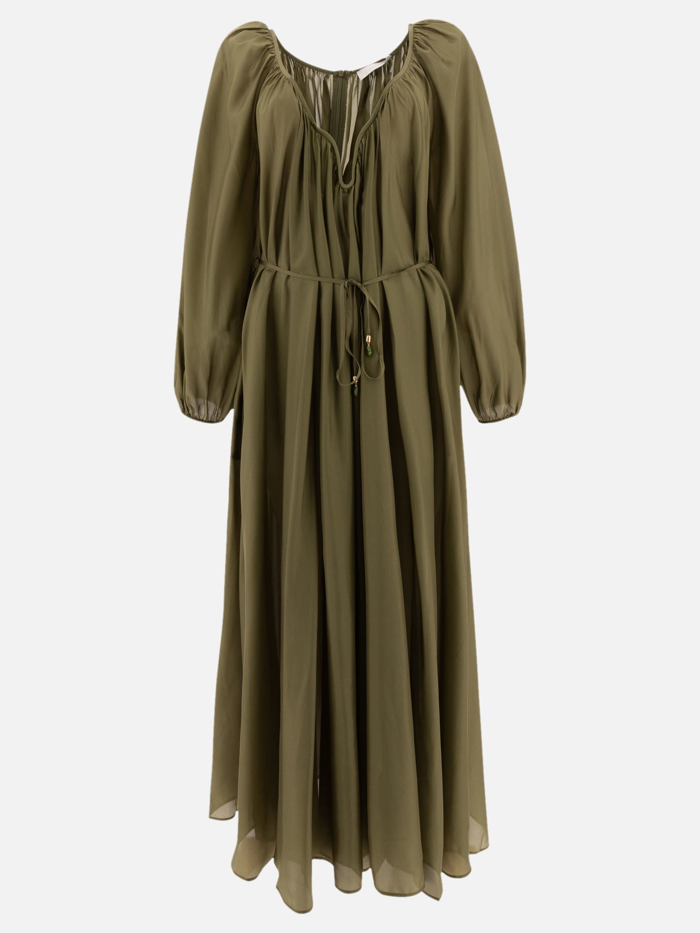 Zimmermann's "Acacia" maxi dress is the perfect blend of elegance and sophistication, ideal for the woman who desires a timeless garment. Made of fine silk, this dress offers a regular fit that enhances the silhouette without sacrificing comfort. The solid color enhances the beauty of its clean lines enriching it with sophisticated charm.